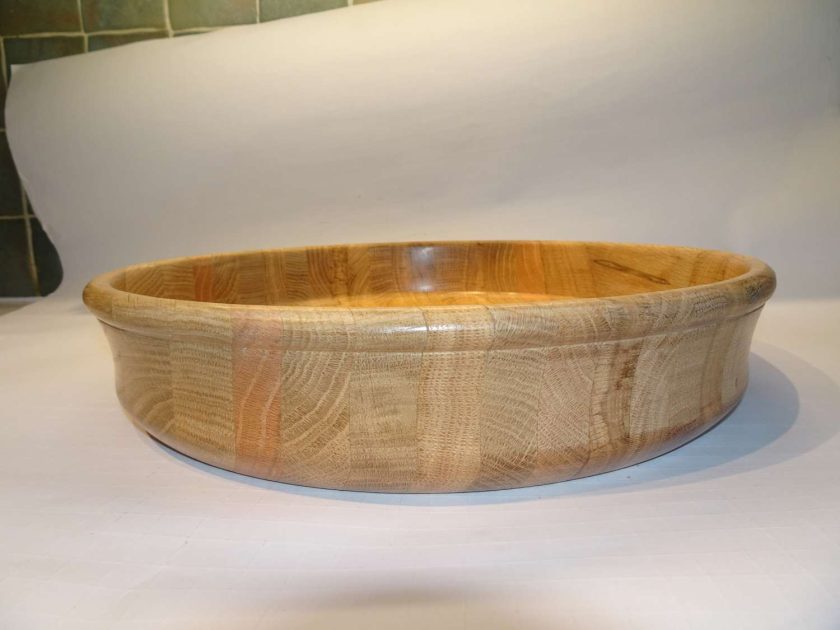 2. Oak bowl made with laminated strips 36.5cm diameter x 7.2cm tall. Finished in food safe wax.